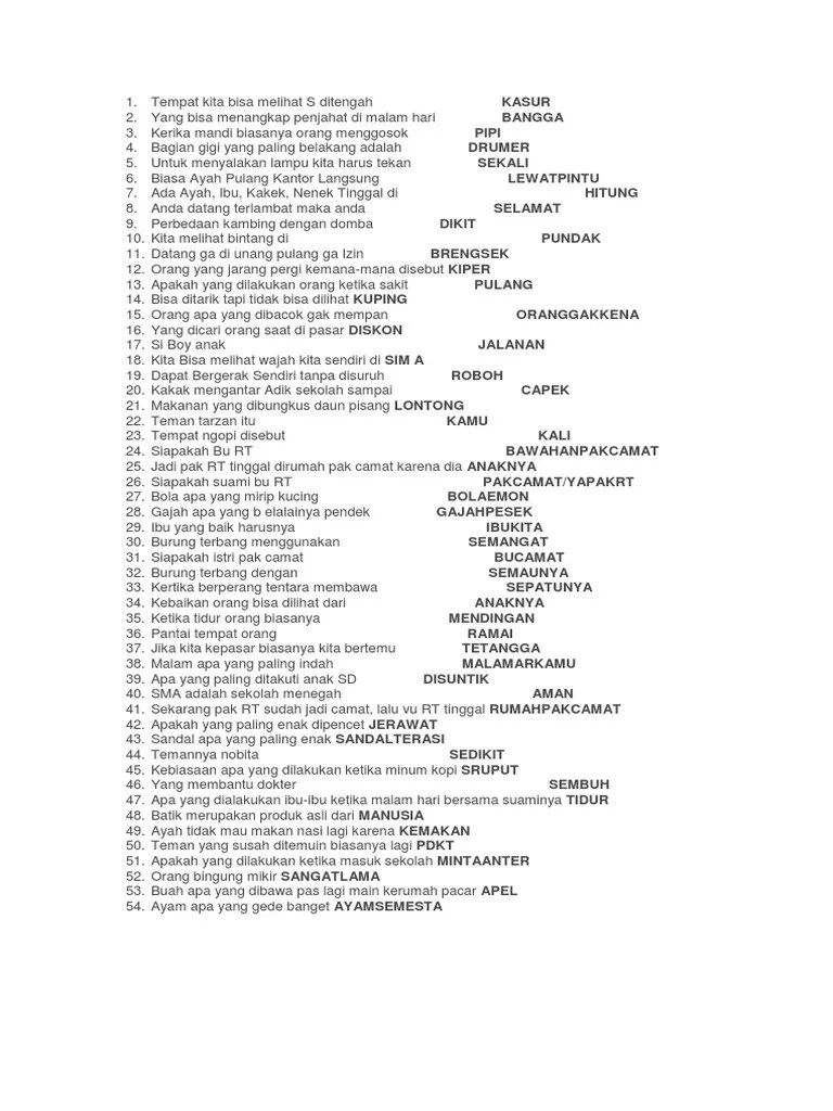 Nah itulah kumpulan kunci jawaban tts cak lontong yang dijamin bikin kalian kesel dengan semua jawabannya. Jika ya pasti sudah tidak asing lagi dong. Dul bjn des 7, 2017 44 sec read. Bermain tebakan teka teki silang alias tts memang sangat menghibur. Kuis tebak tebakan yang seru dan lucu bersama si lontong.